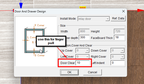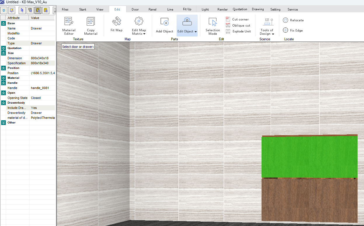 11. If it's only a two-door drawer, you will have to manually adjust the top shelf to have the finger pull design. Right-click the cabinet and select Property