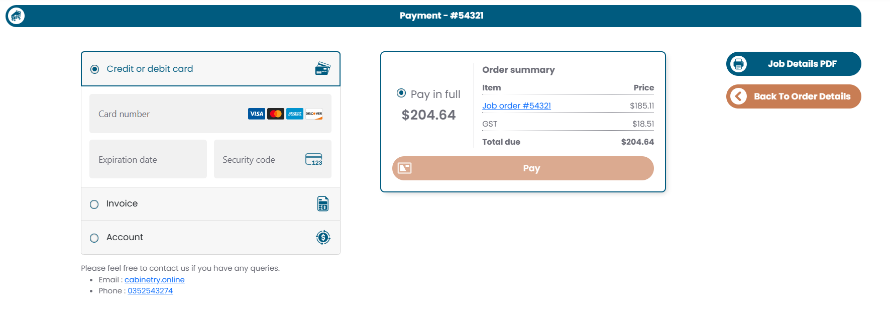 The customer will then be redirected to the invoice screen.