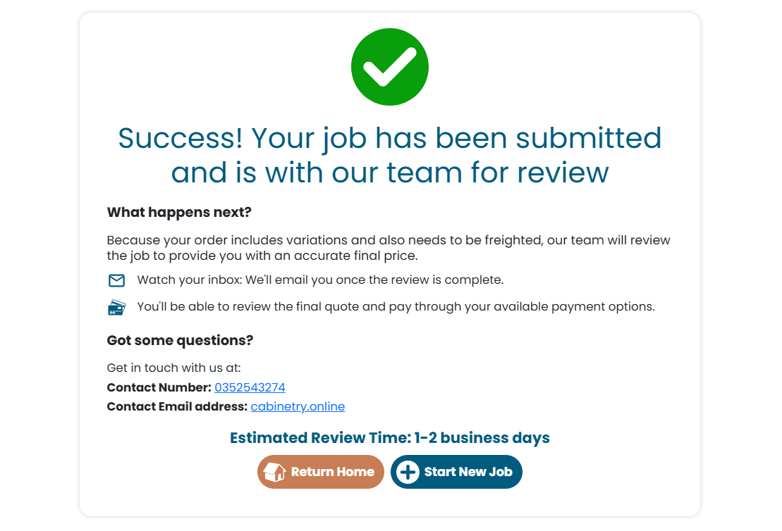 Some jobs require manufacturer review before final pricing can be confirmed.