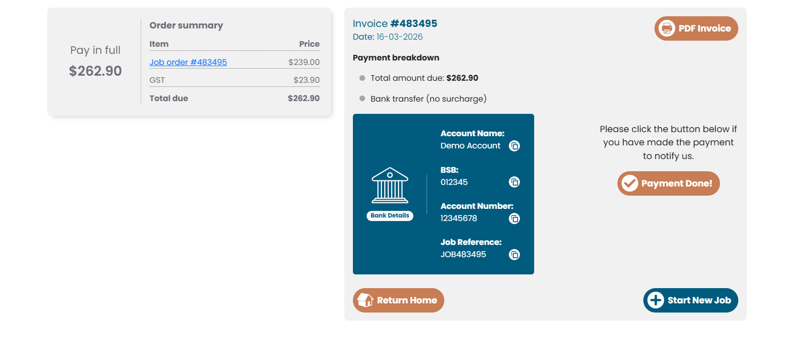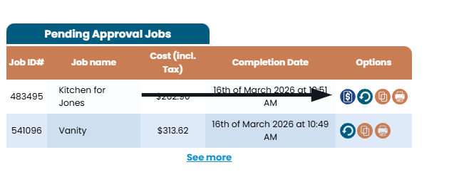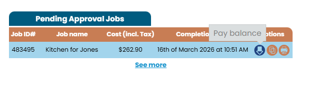 If a job still requires payment, the customer can access the invoice via the dashboard and clicking the View Invoice icon.