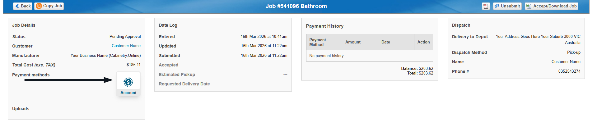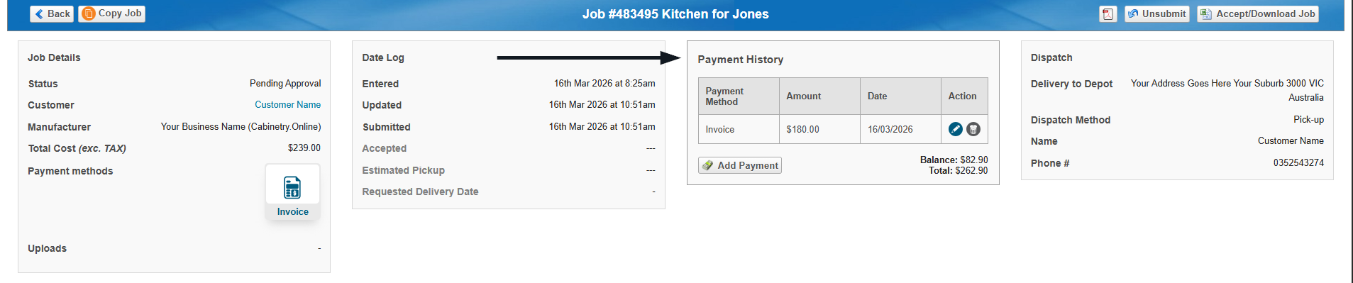 You can view payment information directly within each job.