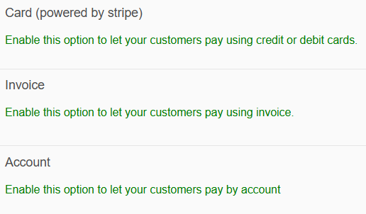 You can also select which of the above 3 methods are the default payment option shown to customers when they get to the payment page.